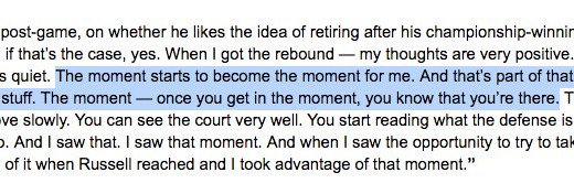 Here is how Kevin Garnett put it over All-Star weekend this year, in an interview with the Tribune: